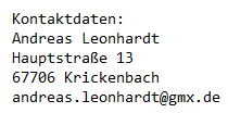 Bei Nachfragen oder Problemen bitte ich Sie mich per eMail zu kontaktieren.